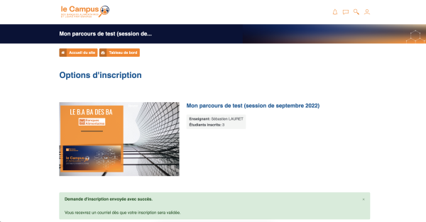 Sur la plateforme Le Campus, toute inscription doit faire l'objet d'une validation par un gestionnaire.