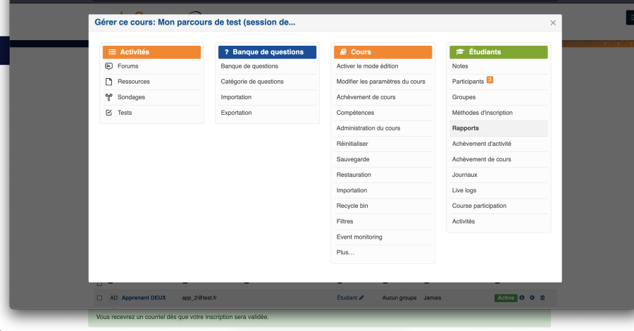 Pour activer l'auto-inscription sur un parcours, suivez les étapes suivantes: