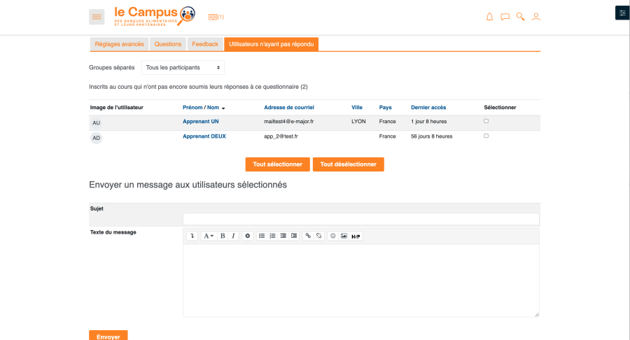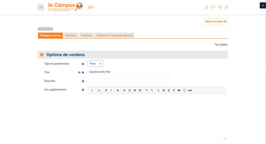 Le questionnaire est une activité visant à produire un retour de la part des apprenants visant à produire des évaluations et des statistiques à destination des formateurs et/ou des responsables formation.