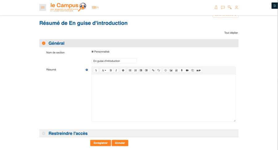 Pour éditer une section, il faut cliquer sur le bouton en forme d'engrenage présent dans chaque section lorsqu'on se trouve dans le mode édition.