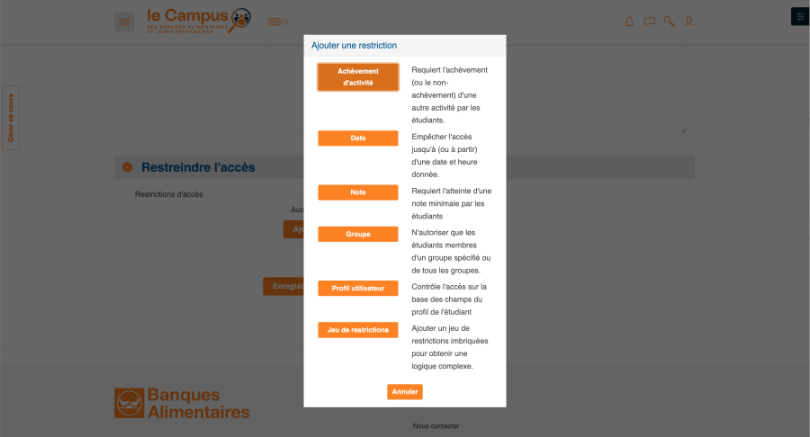 Cliquez sur le bouton 'Ajouter une restriction',